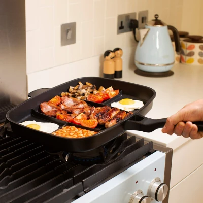 Brighten your mornings with the Lazy Man Frying Pan, the ultimate companion for a breakfast feast that delights! Crafted from sturdy die-cast aluminium, this clever pan features five sections that allow you to cook your bacon, eggs, and sausages simultaneously, turning every cooking session into a joyride of flavours. With a playful design that's as functional as it is stylish, say goodbye to kitchen chaos and hello to organised cooking bliss! The innovative non-stick surface is your magical ally, making flipping and serving a breeze, while the soft-touch handle adds a layer of comfort that makes each flip feel effortless. This pan isn’t just about convenience; it’s also induction-ready, adapting seamlessly to modern kitchen setups. So whether you’re hosting a brunch party or simply indulging in a lazy Sunday breakfast, this frying pan has got you covered. Make your cooking game more enjoyable with a kitchen essential that’s designed for both ease and enjoyment. With its vibrant sections and easy-to-clean design, the Lazy Man Frying Pan turns every breakfast into a memorable feast. Imagine enjoying well-cooked meals without the fuss—let this playful masterpiece simplify your morning routine while adding a splash of colour to your culinary adventures!