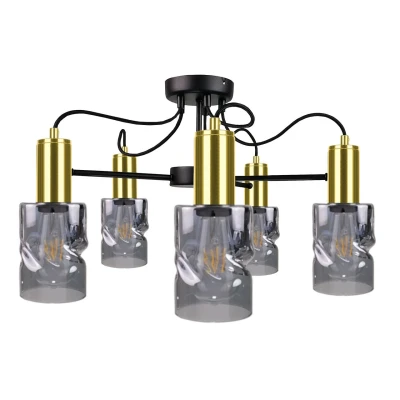 Inger Multi Arm Semi Flush Ceiling Light Black, Gold, 60cm, 5x E27