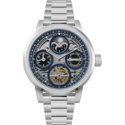 Ingersoll The Arc Mens 44mm Automatic Watch with Blue Skeleton Dial and Silver Stainless Steel Bracelet I16003