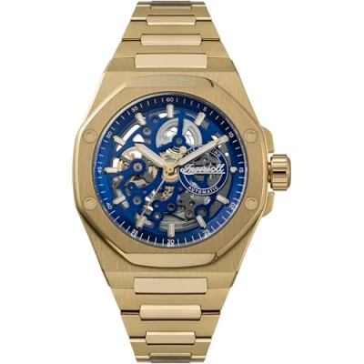 Ingersoll The Faller Mens 43.5mm Automatic Watch with Blue Dial and Gold Stainless Steel Braclet I17602