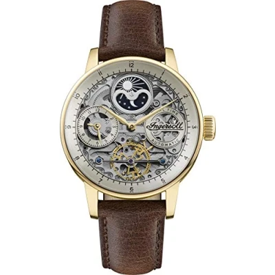 Ingersoll The Jazz Mens 42mm Automatic Moonphase Watch with Light Gold Skeleton Dial and Brown Genuine Leather Strap I07704