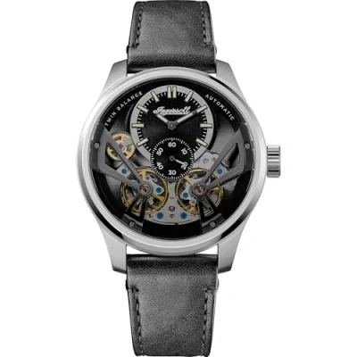 Ingersoll The Naismith Mens 46mm Automatic Watch with Black Dial and Leather Strap I16101