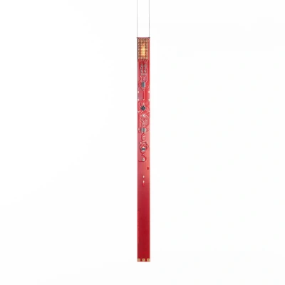LED designer pendant light One New Flame equipped with touch dimmer One New Flame - this extraordinary designer pendant light could not be more aptly titled, as the light interprets the flickering of real candlelight in a completely new way. 256 LEDs, which simulate the flickering of a real candle in a deceptively realistic way, have been installed in the upper part of the elongated body of the luminaire. The brightness of each LED is 6 lumens, but it should be noted that all LEDs never light up at the same time. The designers used video footage of a real candle flame as the starting point for the production of this light. The LED display, onto which the candle flame is projected, was integrated into a 43 cm long electronic board, which gives the pendant light its unusual appearance. The light can be dimmed using a button switch located in the centre of the circuit board. The flat circuit board is connected to the white ceiling canopy via fine cables, so that no eye-catching wire or cable construction can distract from this sensational light source. One New Flame thus appears to float in the centre of the room, spreading a slightly different kind of romance in its immediate surroundings. One New Flame was designed in 2013 by Munich-based industrial designer Ingo Maurer and his team. Mauren is known for his lighting artworks, which stand out from the crowd with their extravagance and always provide a surprise effect.