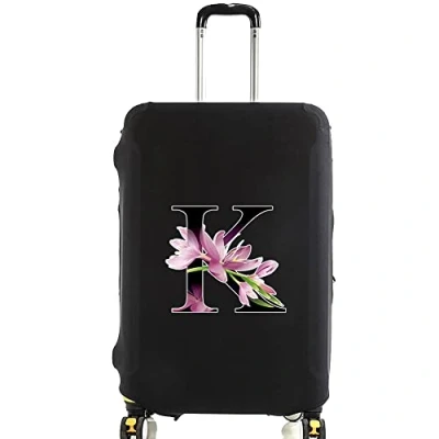 initial letter Printed Design Travel Trolley Case Cover Protector Washable Suitcase Luggage Storage Covers for 18 28 inch (M (22 25 Luggage), Flower color K)