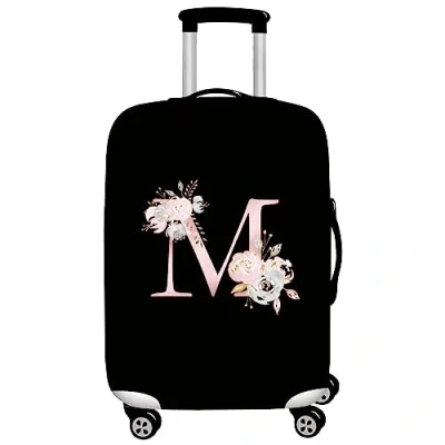 initial letter Printed Design Travel Trolley Case Cover Protector Washable Suitcase Luggage Storage Covers for 18 28 inch (XL (29 32 Luggage), Pink Flower M)