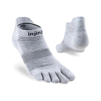Injinji Run Lightweight No-show are a pair of Lightweight Performance toe socks Designed for Runners who seek Maximum Comfort, Support, and Durability. The socks Feature an Innovative Five-toe Design that Prevents Blisters and Allows full use of the foot. The Material Consists of Coolmax® Ecomade Fibers, which keep the feet dry, while Built-in arch Support Ensures Stability During the run. The Sock's low No-show fit sits below the ankle and is Equipped with a heel tab that Protects Against Friction and Ensures the sock stays in place.