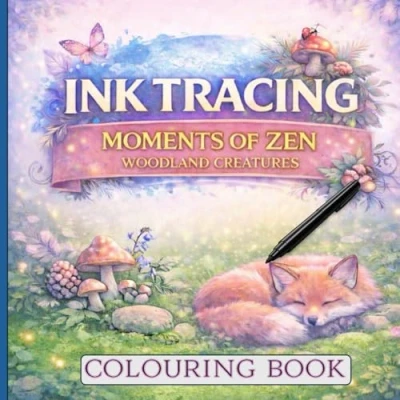 Ink Tracing and Colouring Book: Moments of Zen Woodland Creatures