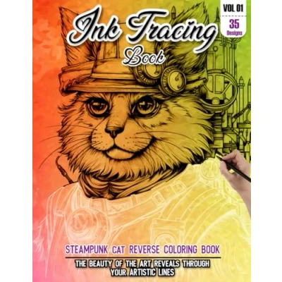 Ink tracing Book: Stress relief reverse Coloring Book for adults: mindfully Follow white lines to Uncover 35 cute cat steampunk arts Magical ... lovers (Steampunk Books)