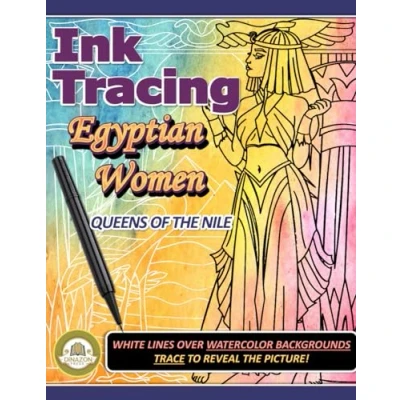 Ink Tracing Egyptian Woman: Queens of the Nile: Trace Lines to Reveal Picture. Reverse Coloring Book.