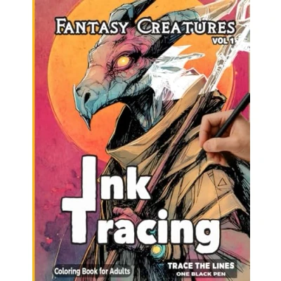 Ink Tracing Fantasy Creatures (VOL 1): A Relaxing Reverse Coloring Book for Adults Follow the White Lines to Reveal Magical