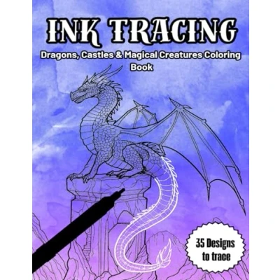 INK TRACING: Fantasy Dragons, Castles & Magical Creatures COLORING Book for Adults Stress Relief Relaxation (INK TRACING BOOK)