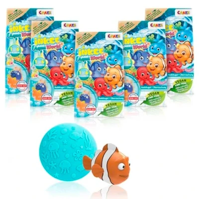 FIVE COLOURFUL FIZZY BATH EXPERIENCES – This set offers a playful mix of turquoise or orange bubbles with a refreshing tropical scent, making bath time enjoyable for fans of fun bath toys HIDDEN SEA CREATURE IN EACH BOMB – Every bomb contains one of six collectible aquatic animals, adding a discovery moment with every bath bomb with surprise inside GENTLE ON SENSITIVE SKIN – Tested by TÜV Rheinland and rated “Excellent” by Dermatest, these kids bath bombs sensitive skin are free from microplastics and do not stain skin, hair, or bathtub PERFECT FOR GIFTS AND CELEBRATIONS – A charming option for birthdays, party treats or christmas gifts stocking fillers kids, packaged to delight children who love colourful baths SAFE & CHILD-FRIENDLY INGREDIENTS – Specially created bath bombs for children, ensuring soft bubbles, engaging colours and a fun reveal inside each bomb for lasting enjoyment