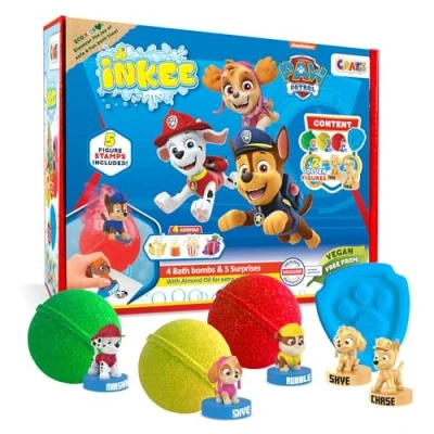 🎉 **ULTIMATE PAW PATROL BATH TIME FUN!** Transform bath time into an exciting adventure! This INKEE Paw Patrol gift box includes 4 vibrantly colored bath bombs with delightful scents (popcorn, cola, grape iced tea, banana milkshake) and 5 collectible Paw Patrol figures – including 2 super rare gold figures! Kids will love the bubbly fun and the surprise inside each bomb. 🎁 **COLLECTIBLE SURPRISE FIGURES!** Each 80g bath bomb hides a unique Paw Patrol figure (3 of 7 to collect)! The thrill of the surprise adds extra excitement to bath time, making it a truly unforgettable experience. 🐶 **PREMIUM QUALITY BATH BOMBS FOR KIDS.** Made with high-quality, skin-friendly almond oil, these INKEE bath bombs are gentle on delicate skin, leaving it soft and smooth. No stains on skin, hair, or tub! ✨ **EXTRA SPECIAL GOLD EDITION!** Unwrap the mystery surprise bag to reveal 2 exclusive gold edition Paw Patrol figures! These rare collectibles add extra value and excitement to this amazing gift set. 🛀 **PERFECT GIFT FOR PAW PATROL FANS!** This complete gift set makes a fantastic present for birthdays, holidays, or any special occasion. Give a gift that combines fun, surprise, and hours of bath time entertainment.