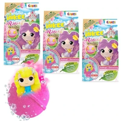 Triple Bath Time Adventure – Enjoy three colourful foaming bath bombs, each hiding one of six surprise princess figures for magical bath play and endless fun Gentle Care for Sensitive Skin – Dermatologically rated Excellent by Dermatest, these bath bombs for children are kind to delicate skin, free from microplastics, and safe for regular use Sparkling Colours & Lovely Scent – Each bath bomb releases vibrant pink and purple fizz and a pleasant cotton candy fragrance, transforming the bath into a fun and soothing experience for kids Perfect Kids Bath Gift Set – This trio makes thoughtful bath gifts for girls, great for birthdays, advent calendars, or Christmas gifts stocking fillers kids will love Tested for Safety and Clean Fun – TÜV Rheinland certified and non-staining on skin, hair, or tub – providing peace of mind and playful bath enjoyment every time