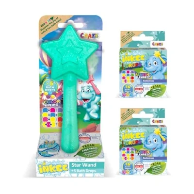 Magical Bath Fun for Kids – Turn every bath into a colourful adventure with this INKEE Wand Star. Simply add a bath drop and swirl your magic wand through the water to release bright, swirling trails that fascinate children aged 3 and above Encourages Creativity and Learning – More than just bath toys for 3 year olds, this set introduces colour-mixing play. Children can explore basic colour theory by combining bath drops to create up to seven vibrant shades – a creative toy for children that sparks curiosity Complete Set with Bath Drops Included – Includes one INKEE Wand Star and two full packs of bath bombs (37 total pieces). Everything your child needs for hours of sensory bath play in one fun, easy-to-use set Gentle, Safe and Skin-Friendly Formula – The bath toy colours are dermatologically tested “EXCELLENT” by Dermatest, free from parabens, microplastics, kerosenes and gluten, and are vegan. The colour does not stain skin, hair or the bathtub Perfect Toddler Bath Toys for Everyday Use – Durable and easy to handle, the INKEE Wand Star is designed for small hands and safe water play. A wonderful water toy for kids that transforms regular bathing routines into imaginative playtime, Manufacturer: CRAZE