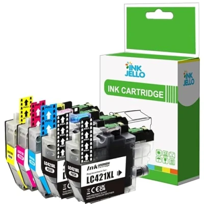 Inkjello Compatible 421XL Ink Cartridge Replacement For Brother DCP J1050DW J1140DW J1800DW MFC J1010DW Black Cyan Magenta Yellow (5 Pack)