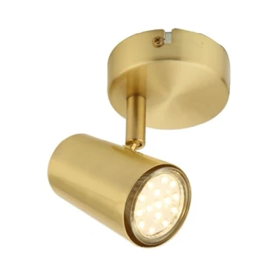 Expert ElectricalForum Harvey Single GU10 Spotlight Satin Brass. Manufactured from aluminium / steel the Forum Harvey spotlight is available in a modern satin brass finish.