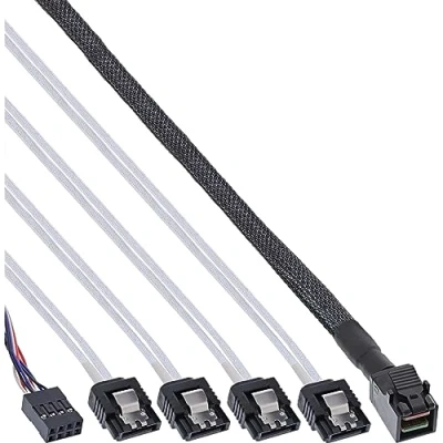 InLine® 27630B Mini SAS SFF 8643 to 4x SATA HD Cable with Side Band 1 m