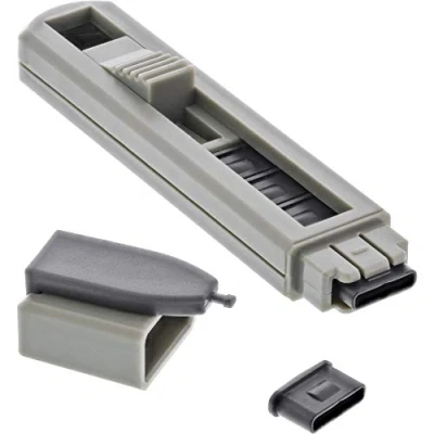 USB Type-C port blocker with 6 blockers Practical design like a USB stick Storage of all USB blockers in the stick Box contents: 6 x USB type C blockers, 1 x tool for inserting and removing
