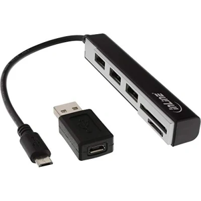 InLine 66775 C USB OTG Card Reader 3 Port 2.0 Hub for SDXC/Micro SD with Adaptor