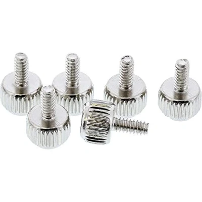 . The thread length is 8 mm. . Total length of the knurled screw: 16.4 mm. . Thread diameter: approx. 3.4 mm (UNC #6-32 thread) knurl diameter 8.9 mm material: nickel-plated steel International products have separate terms, are sold from abroad and may differ from local products, including fit, age ratings, and language of product, labeling or instructions.