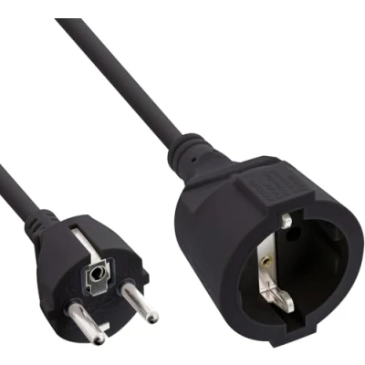 InLine Protective Contact with Child Lock Male Female Extension Cable (10 m), Black