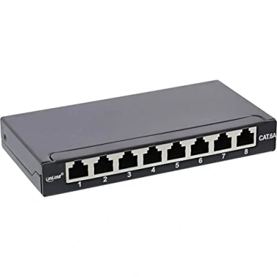 InLine® RAL9005 Patch Panel Cat.6A 0.5HE 8 Way Table / Wall Mounting Black