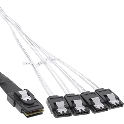 Mini SAS SFF8087 (36-Pin) to 4x SATA 1:1 assignment (OCR) For connecting controllers with a SFF8087 connection Length: 1m