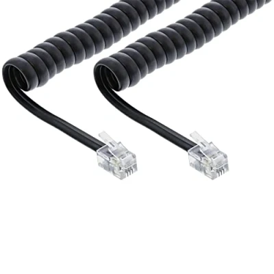Coiled cable assembled with RJ10 4P4C connectors Assignment: 1: 1 Maximum length: 4 m. Colour: black