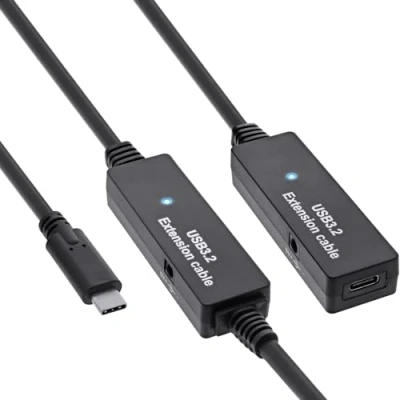 InLine USB 3.2 Gen.1 Active Extension, C Male to Female, Reaper Cable with Signal Amplification, Long Distances, for Hard Drives, Printers, Webcams, Keyboards and More, 10m, 35655C