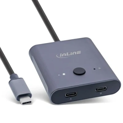 InLine USB C Switch, Bi Directional (Data and Video), 2 in 1 Out or Out, Distributor/Switch for PCs, 8K@60Hz 4K@60Hz Video, 10Gb/s Data Transfer, 100W Charging, 60603T