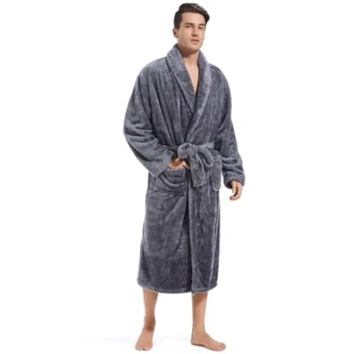 Inner Wish Mens Plush Fleece Robe, Cozy Warm Bathrobe Fuzzy Male Spa Long Robe With Pockets (DARK GREY), Dark Grey, L/XL
