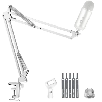 InnoGear Boom Arm Microphone Mic Stand for Blue Yeti HyperX QuadCast SoloCast Snowball Fifine Shure SM7B and other Mic, Medium, White
