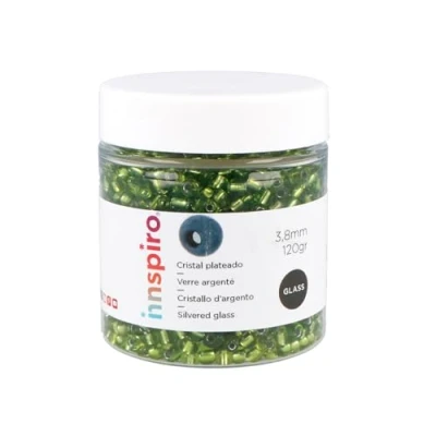 INNSPIRO Avocado Green Silver Round Glass Rock 3.8mm 6/0 120g