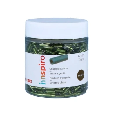 INNSPIRO Glass Rock Silver Cylinder Avocado Green Diamond 1.8 x 6 mm 95 g