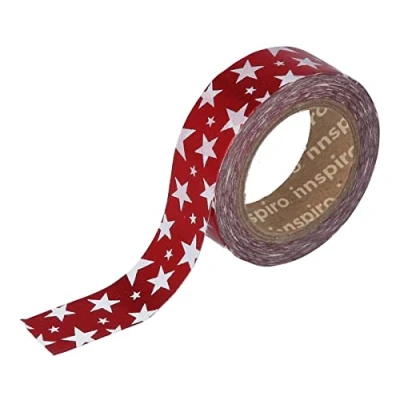 INNSPIRO Masking Tape Washi Foil Stars Red 15 mm x 10 m Metal Series
