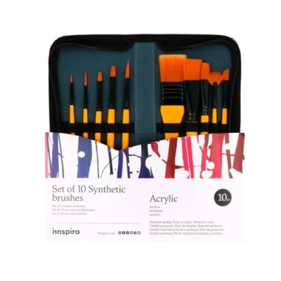 Synthetic hair brushes with assorted shapes, perfect for acrylic painting, can also be used with gouache, oil or watercolor. Made of easy to clean premium synthetic fur. After being used it returns to its natural shape quickly. It is the perfect set for both first-time painters and advanced artists. CARE: Use neutral soap and clean the tips of your brushes in circular motions. Rinse color and soap, shake off water and lay flat to dry. For a long time, do not leave brushes immersed in water for a long time. Brushes: round no. 0-2-4-8, cat tongue no. 10, flat no. 3/4-4-6, oval no. 3/4 and palette 3/8 in. With a protective case for easy storage and take with you wherever you want., Weight: 0.4960400895 pounds, Manufacturer: INNSPIRO