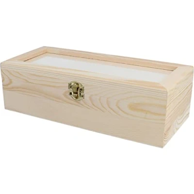 Untreated (natural) wood that can be decorated with techniques such as decoupage, napkins, for painting, stenciling, dyeing, cracking, browning, etc. Lid with removable glass to decorate with dried flower, tips, cross stitch, etc. 25.5 x 8.5 cm.