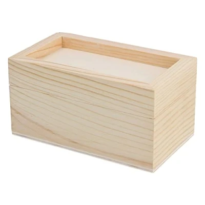 Untreated wood (natural) that can be decorated with techniques such as decoupage, napkins, for painting, stenciling, dying, cracking, browning, etc. Rectangular box of pine wood and veneer envelope. Lid designed for the creation of mosaics. 5 x 10 cm. (Reference 7902).
