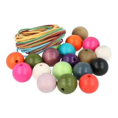 INNSPIRO Wooden Beads Ball Assorted Colours 25 mm. and 5 m. 100 U Cotton Thread. Approx.