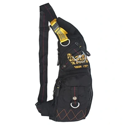MULTI COMPARTMENTS New Moon shape with multiple pockets for storage and organization Main compartment fits most tablets or medium camera perfectly Front pockets for phone wallets gear and small accessories points to clip carabiners clip a water bottle keys or climbing hooks Back pocket for small notebook and pens LIGHTWEIGHT (0 9 pounds) but STRONG A true friendly and awesome sling bag really good for carrying in sports travel hiking running cycling or use DURABLE and WATERPROOF The sling bag is made from highly rip and water resistant nylon provide strengthen and longlasting performance with minimal weight Dimensions are 22 8 x 10 2 x4 7 inches Strap adjustable suitable for men and women adults and kids