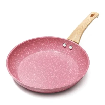 Innwewell Non Stick Frying Pan 24 cm Pink Granite Skillet, No Toxic Egg Omelette Pan, Induction Compatible, PFOA Free