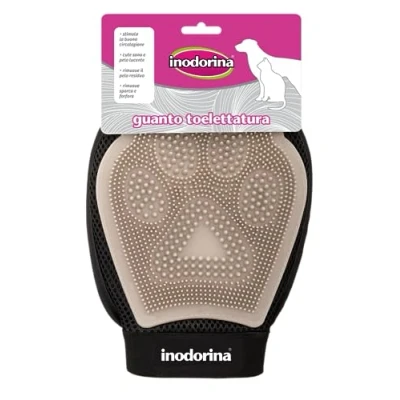 Grooming Glove: The Inodorina Grooming Glove is designed to gently remove excess hair, keeping your pet clean and tidy at all times DISTRICTS EFFECTIVELY AND SAFELY: Thanks to its long, rounded teeth, it detangles the coat easily, even during periods of shedding, leaving the hair soft and silky POLISHING AND REFRESHING EFFECT: Regular brushing improves blood circulation and gives your pet's coat a natural shine for a healthy, groomed appearance SIGNED INODORINA QUALITY: From daily hygiene to coat care, Inodorina accompanies you with safe, fragrant and practical products. Also try shampoos, wipes, deodorants and more to care for your four-legged friends COAT CHECK AND PARASITE PREVENTION: Using the glove, you can easily check your pet's coat, checking for any parasites or skin issues
