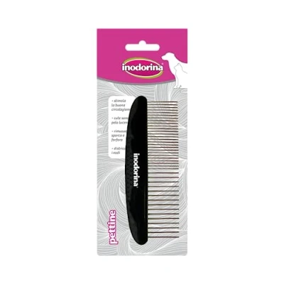 ManoManoThe Inodorina comb is ideal for detangling your dog's or cat's coat. Its wide and close-set teeth remove knots and excess fur while adding shine. Perfect for daily brushing and for detecting parasites.