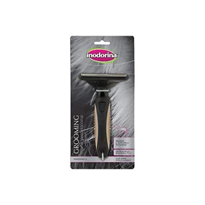 EXCESS HAIR PETTING: Inodorina's Deshedder is perfect for removing excess hair and polishing your dog's coat, keeping it healthy and shiny DISTRICTS THE COAT QUICKLY AND EFFECTIVELY: Thanks to its practical design, it quickly detangles your dog's coat, making it soft and knot-free POLISHING EFFECT: Regular brushing improves blood circulation and gives your pet's coat a natural shine for a healthy, groomed appearance SIGNED INODORINA QUALITY: From daily hygiene to coat care, Inodorina accompanies you with safe, fragrant and practical products. Also try shampoos, wipes, deodorants and more to care for your four-legged friends EASY TO USE: Run the Inodorina Deshedder along your dog's coat, starting at the head and continuing to the tail. Gently remove excess hair and detangle the coat for a soft, knot-free result