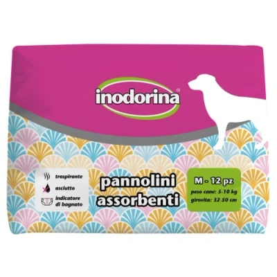 Inodorina, Disposable Absorbent Nappies, Breathable Technology and Wet Indicator, with Tail Hole Long Fins, for Dogs Weight from 5 10 kg, Size M, 12 Pieces