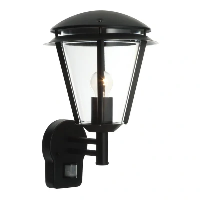 Inova PIR 1 Light Outdoor Wall Lantern Matt Black, Clear Polycarbonate IP44, E27