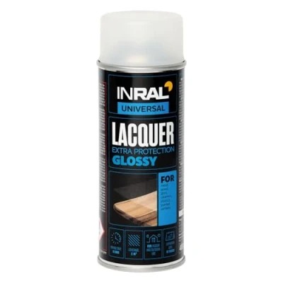 INRAL Clear Lacquer Spray Gloss Finish [400ml] Fast Drying Acrylic Coat Waterproof, UV & Heat Resistant Scratch Proof Protective for DIY, Crafts Art