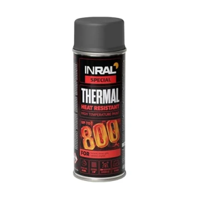 INRAL Heat Resistant Spray Paint Grey Matt [400ml] High Temperature BBQ, Stove & Exhaust Durable, Fast Drying Coating for Metal Ideal DIY Automotive Use