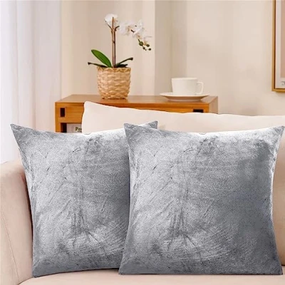 INSAFIANS Decorative Crushed Velvet Cushion Covers 45cm x 45cm/Square Throw Pillowcases for Sofa Bedroom with Invisible Zipper 18x18 Inch (2, Silver)